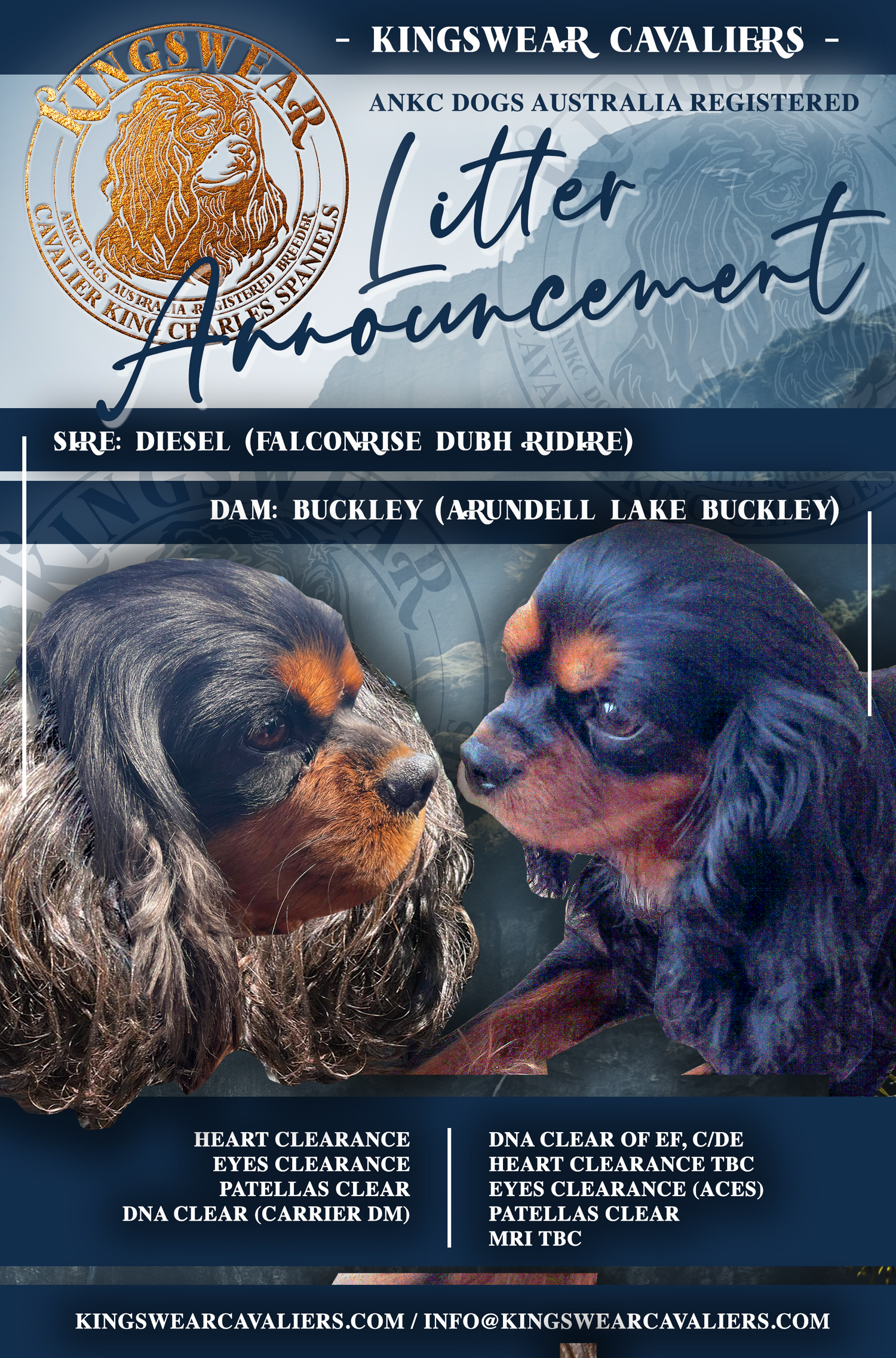 The Sire is Diesel (Falconrise Dubh Ridire) and the Dam Buckley (Arundell Lake Buckley).